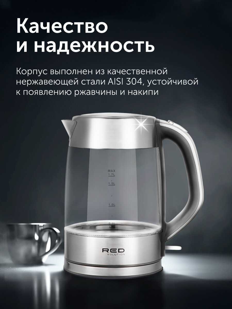 - + Качество и дизайн отличные - ручка выполнена из прочного пластика, корпус из металла и стекла, красивая подсветка. Быстро греет воду.