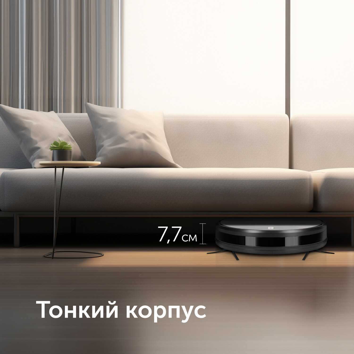 - Поддержка приложения для смартфона позволяет планировать уборку по расписанию и таймеру.