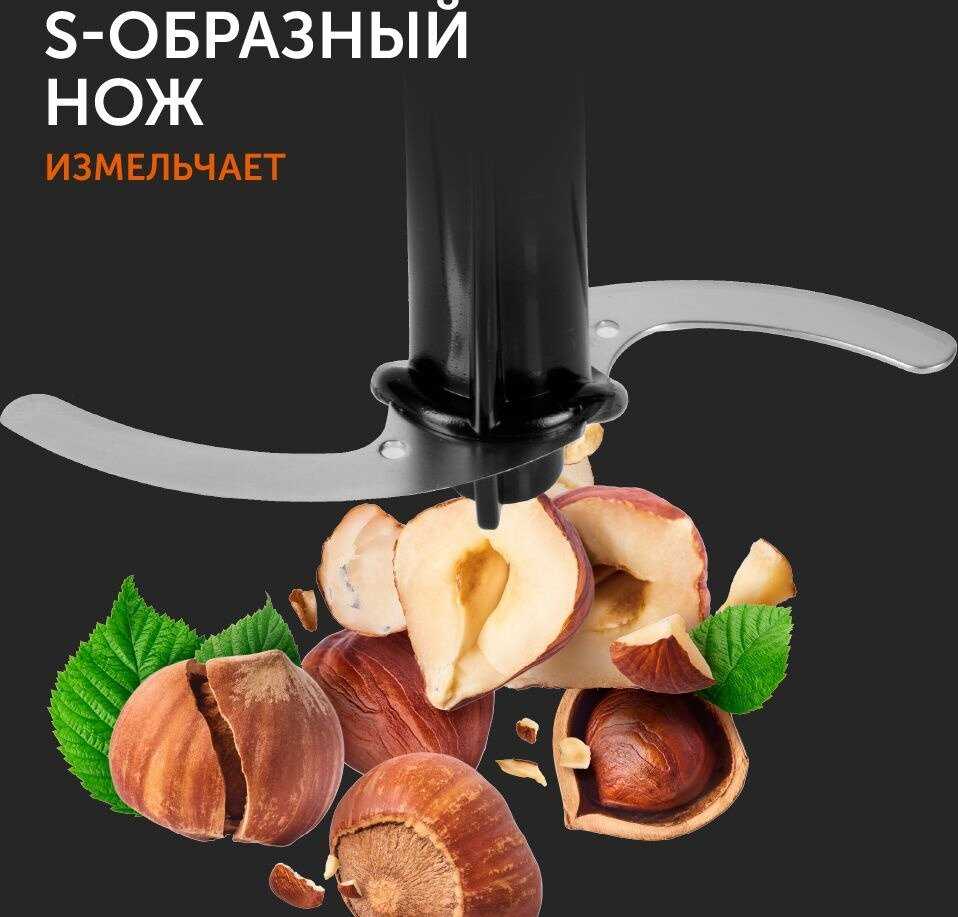 - Обеспечивает быстрое измельчение твердых ингредиентов, таких как лед, орехи и мясо, за 2-30 секунд без перегрева, повышая эффективность приготовления фарша или смузи.