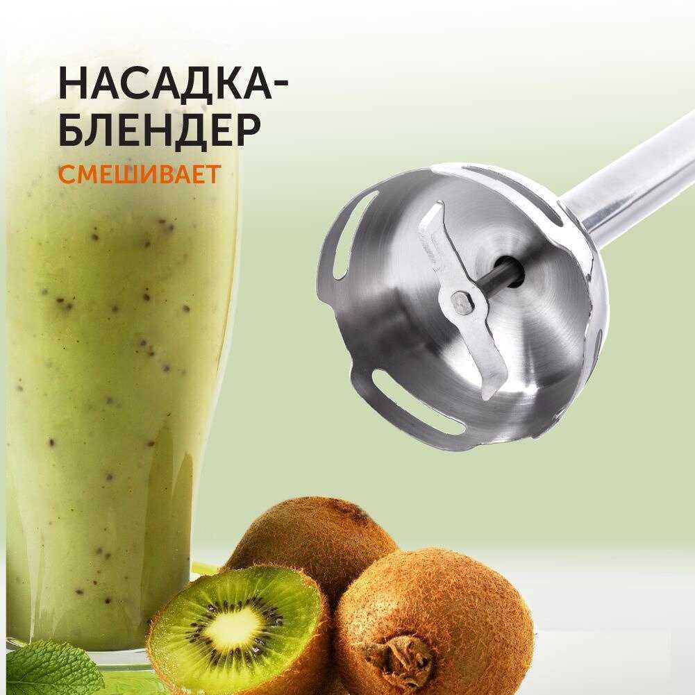 - Насадка для пюре с металлическими ножами создает воздушную текстуру без комков из картофеля или овощей, упрощая детское питание или гарниры.
