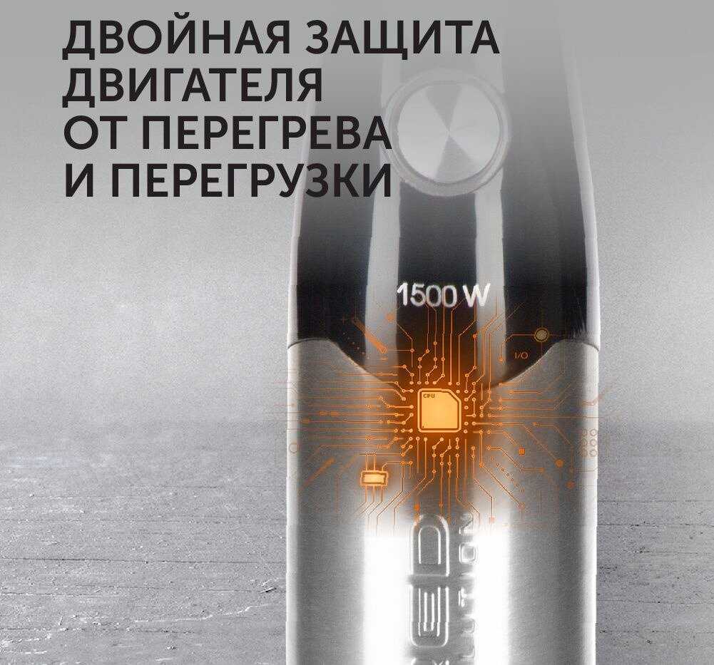 - Сочетается с защитой от перегрузки, предотвращая остановки во время интенсивных задач, как приготовление супов-пюре из овощей.