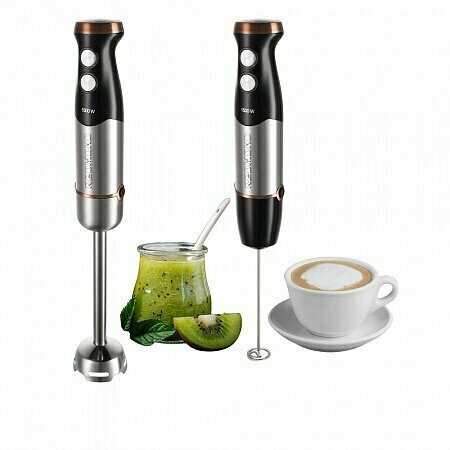 Отличный блендер! Был приобретен на замену простого погружного блендера с одной насадкой купленного "на пробу". В итоге использования блендера с одной насадкой понял, что инструмент отличный и необходимо больше насадок для более широкого применения в помощи во время готовки. Выбор пал на эту марку и модель по опыту работы с мультипекарем этого бренда, который очень понравился в работе. Модель была выбрана с учетом наличия большого кухонного комбайна, но в определенных ситуациях его использование было не целесообразным. Соответственно нужен был менее громоздкий помощник. Товар в первую очередь очень хорошо и аккуратно упакован. Корпус и насадки сделаны качественно. Радует металлический нож и корпус измельчителя, наличие шкалы на мерном стакане, наличие противоскользящих вставок на чаше. Ножи острые справляются со своей задачей замечательно, порубить пару луковиц или других продуктов в "кашу" дело 5 секунд. Венчик взбивает отлично, быстро и аккуратно взбил сливки. Отличные опции регулировки мощности и турборежим.