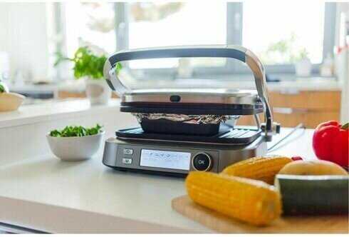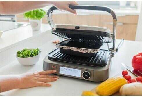 - + С грилем можно готовить широкий ассортимент блюд, от стейков и бургеров до овощей и сэндвичей, что делает его универсальным инструментом на кухне. За счет мощности, благодаря равномерному нагреву панелей прибор позволяет добиться профессионального качества приготовления пищи, создавая идеальные блюда, сохраняя естественные соки и ароматы продуктов. Управление грилем организовано очень просто и интуитивно. Сменные панели взаимозаменяемы, к тому же разрешена их мойка в посудомоечной машине. Антипригарное покрытие панелей позволяет готовить без использования масла, однако, при необходимости, панели можно смазать небольшим количеством растительного масла. Я обычно смазываю продукт, поскольку смазанные маслом панели могут чадить. Мощность гриля оказалась достаточной для всех задач. Он превосходно справился со всеми тестами, даже в раскрытом виде с жаркой толсто нарезанных овощей. К равномерности тепловой обработки у меня также не возникло никаких претензий - продукты, разложенные по всей поверхности гриля, были поджарены примерно одинаково, явно пережаренных или светлых участков я не заметила. Отмечу, что настройки автоматических программ адекватны и позволяют получить именно тот результат, на который рассчитываешь. Опыт эксплуатации гриля оставил самые благоприятные впечатления. Я ни разу не столкнулась с какими-либо затруднениями или замечаниями при работе.