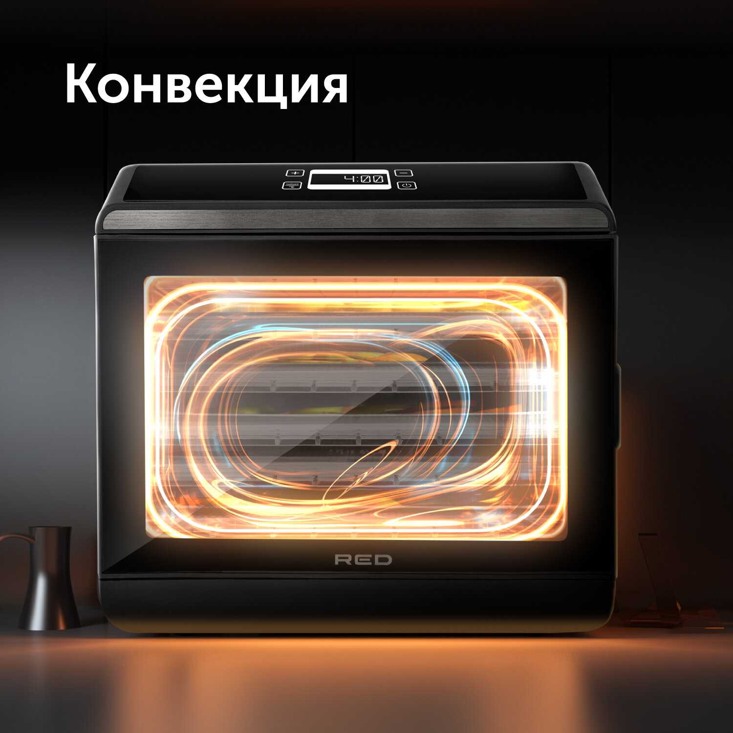 - Для переворачивания продуктов или смены поддонов требуется полное выключение и сброс таймера.