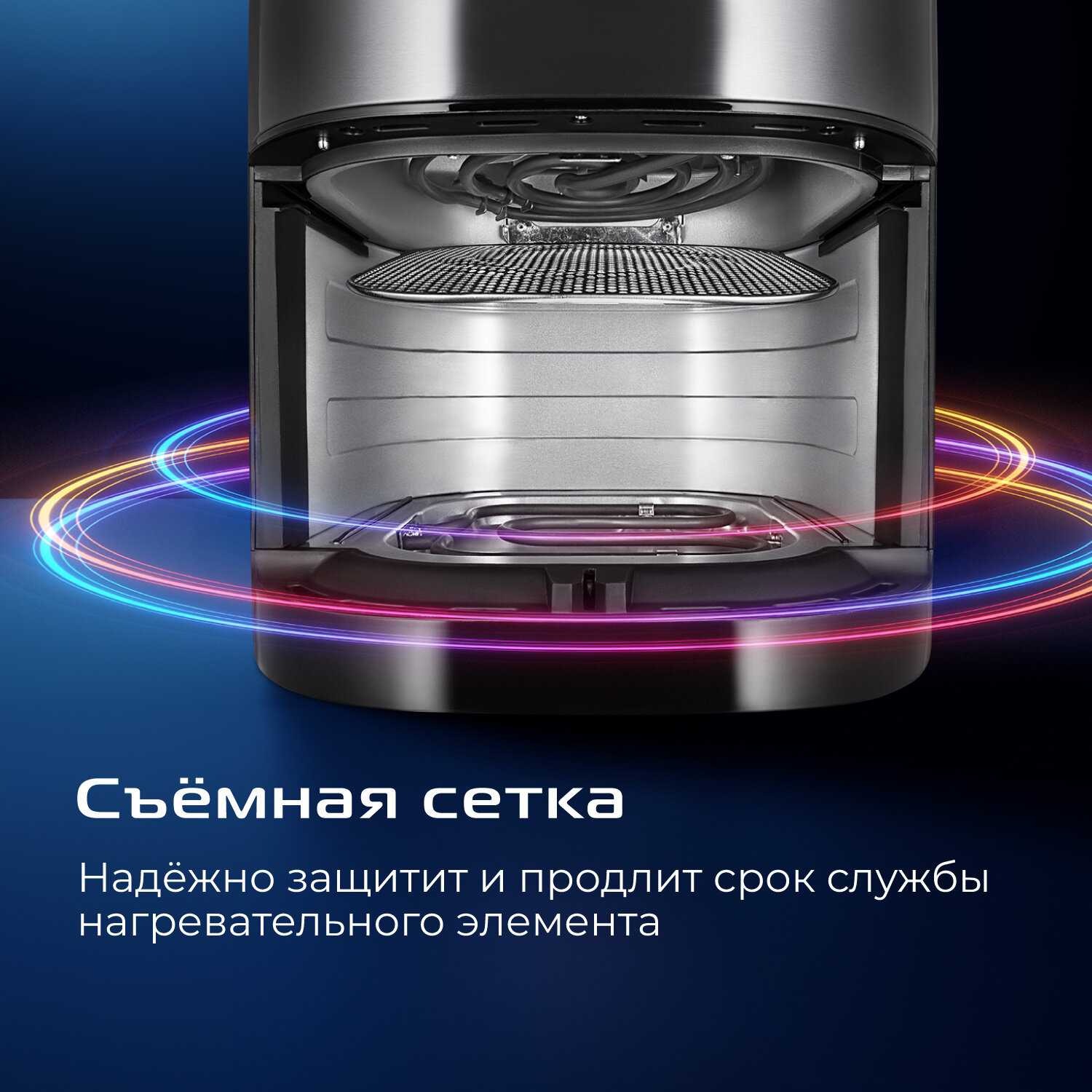 - + Главное — принцип работы: усиленный поток горячего воздуха равномерно прогревает продукты со всех сторон, благодаря чему получается аппетитная корочка снаружи, а соки остаются внутри 🍗🔥.
