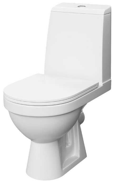 Шикарный туалет! Смывает мощно и у нас никогда не было проблем с засорами. Его легко чистить даже под ободом. В комплекте сразу была крышка. Вполне неплохая. Сделана из пластика. Не крутится на унитазе. Опускается плавно. Кнопка слива хорошо работает. Бачок большой и хорошо смывает. Вода при смыве не разлетается по сторонам. Сделан унитаз их сантехничего фарфора. Достаточно тяжелый.