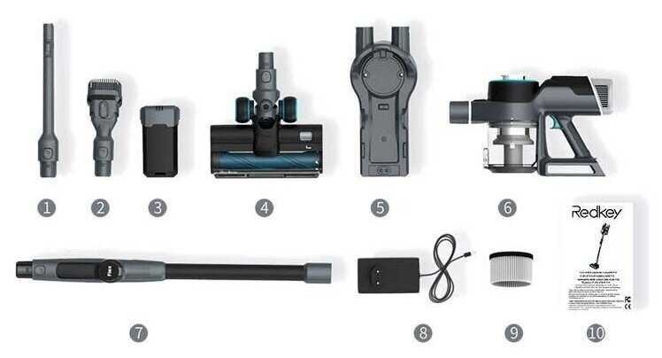 - В набор входят насадки для щелей, мебели и ковров, а также запасной фильтр и крепёж для базы.