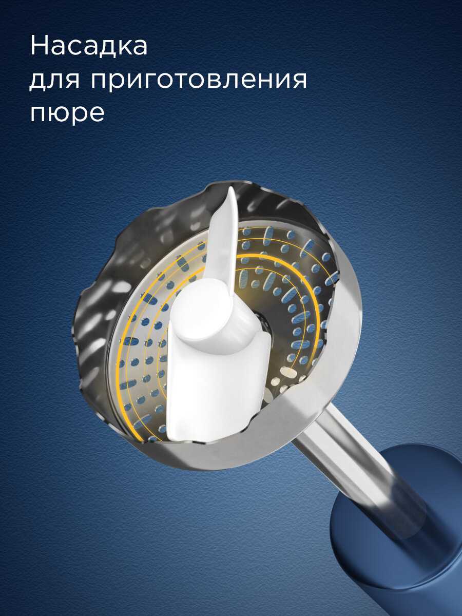 Насадки : | венчик для взбивания, для приготовления пюре, измельчитель |