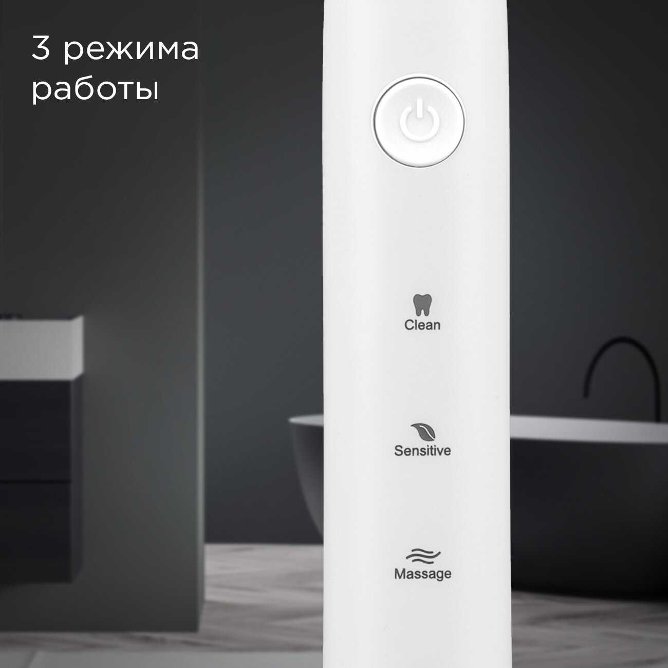 Щетка предлагает 3–5 режимов, включая стандартный, отбеливание, массаж десен, уход за чувствительными зубами (sensitive) и интенсивную чистку. Пользователи чаще применяют стандартный или sensitive для повседневной гигиены, а отбеливающий режим — для видимого осветления эмали. Режим massage эффективен для очистки межзубных промежутков и укрепления десен. Возможность переключения позволяет адаптировать чистку под индивидуальные нужды. -