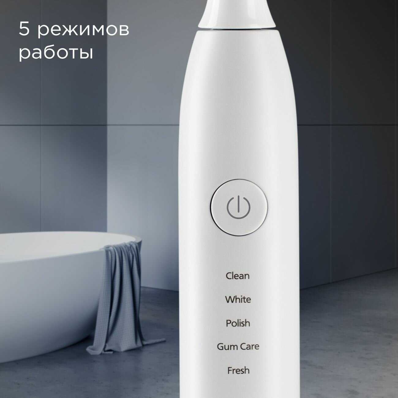 Есть 5 режимов работы, пользуюсь почти всеми сразу, нравится разнообразная чистка. Чистка идет ровно 2 минуты. Без подзарядки работает долго, в комплекте идет кейс, там есть дезинфекция, беспроводная зарядка и удобно хранение.