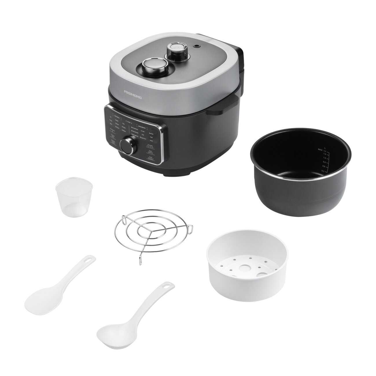 Быстрое приготовление – благодаря функции скороварки блюда готовятся в 2–3 раза быстрее (например, мясо за 20–30 минут вместо 1,5 часов). - - Нет съемной крышки – ее нельзя мыть в посудомоечной машине, только вручную.