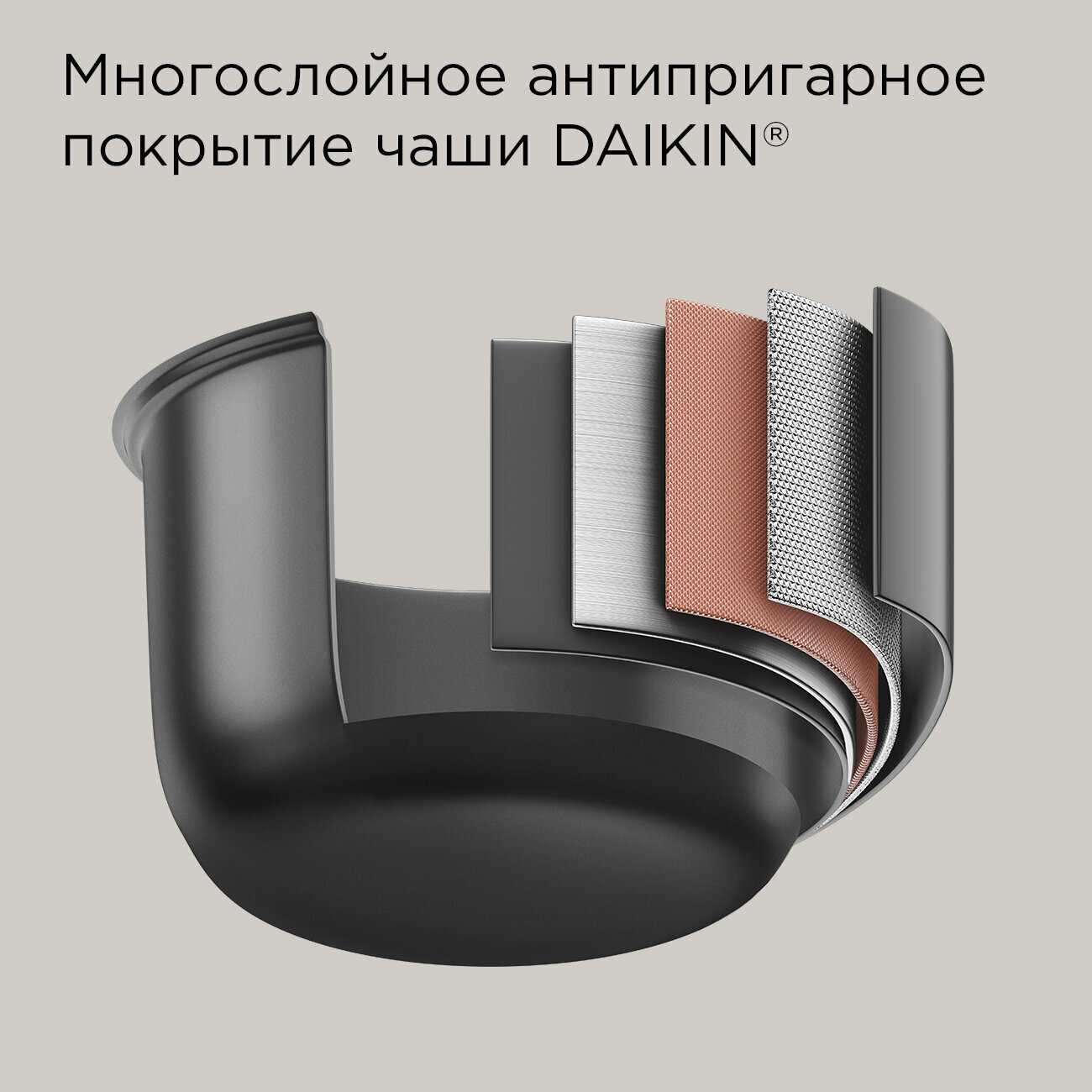 Из минусов — разве что чаша могла бы быть с антипригарным покрытием получше, со временем появляются царапины, если использовать металлические ложки (лучше использовать силиконовые или деревянные).