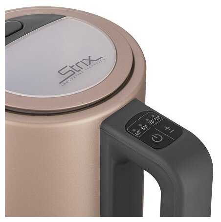- + объем 1.5 литра, необычный дизайн, управляется через смартфон, 5 температурных режимов, интегрируется с Алисой, крутится на 360 градусов, автоматическое поддержание температуры воды до 12 часов, мощность до 2200 дает быстрое кипячение, нагрев с точностью до 1 градуса, умное кипячение в зависимости от качества воды