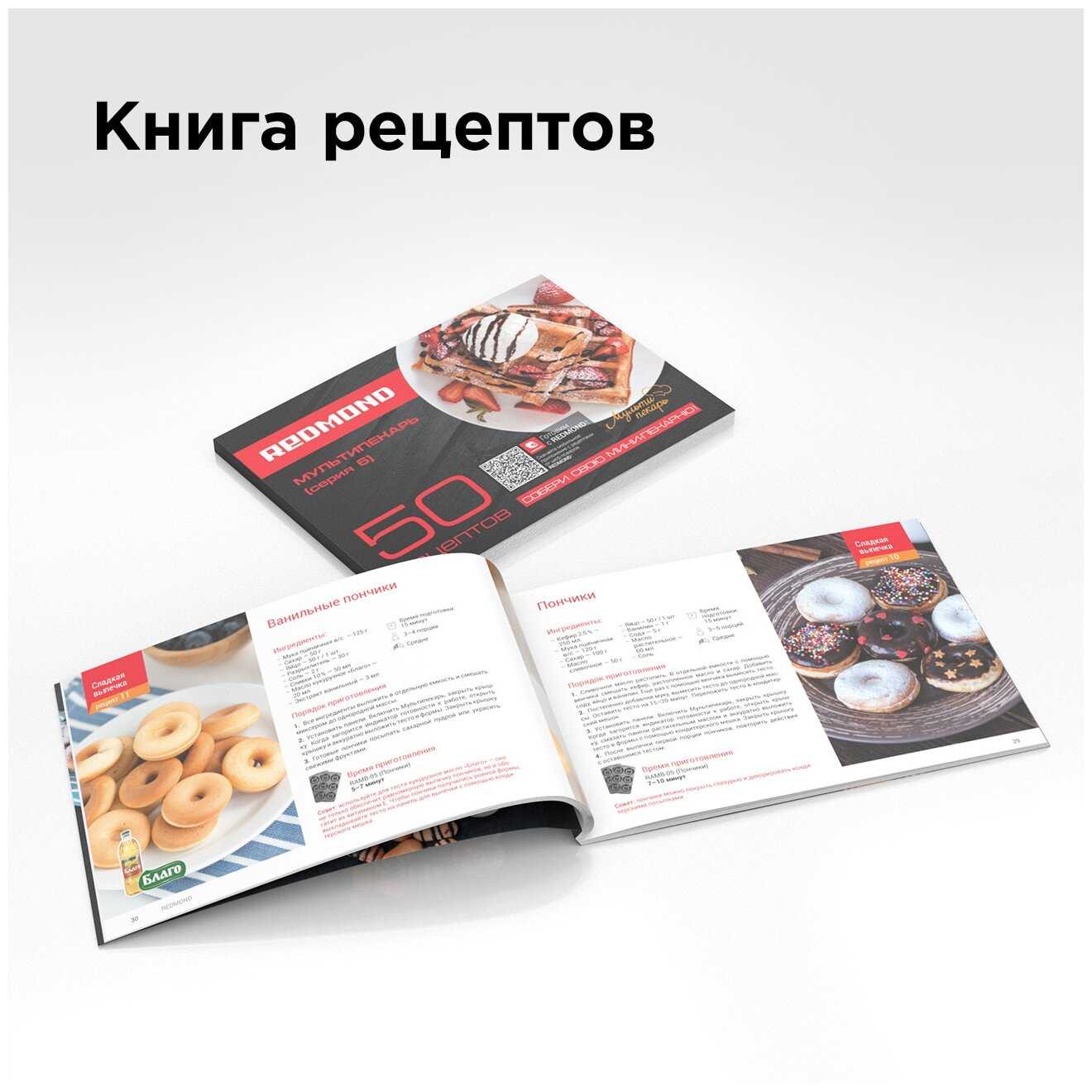 - Широкий выбор рецептов в комплектной книге и приложении помогает разнообразить меню без необходимости поиска дополнительных источников.