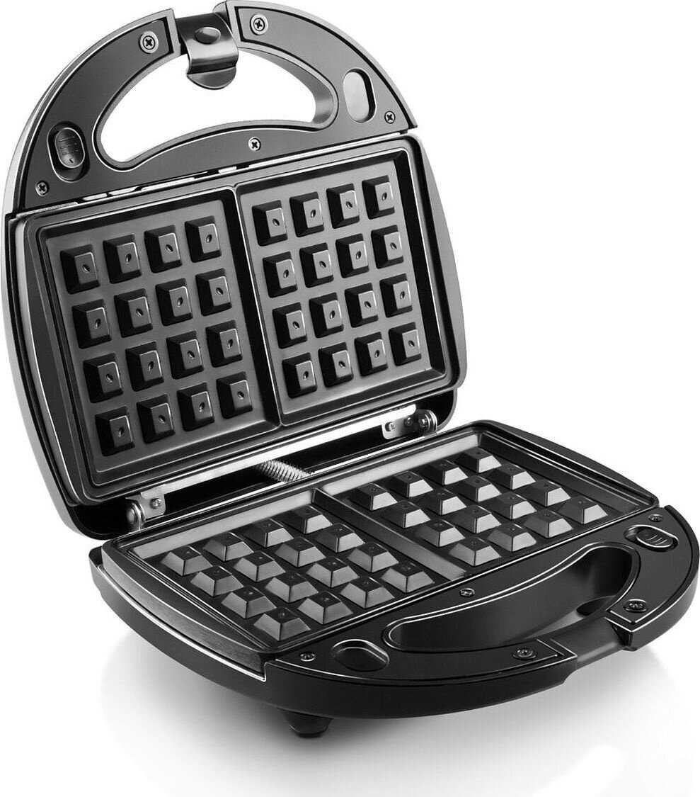 - Устройство подходит для приготовления вафель, сэндвичей, гриля, выпечки и разогрева пищи, заменяя несколько кухонных приборов.
