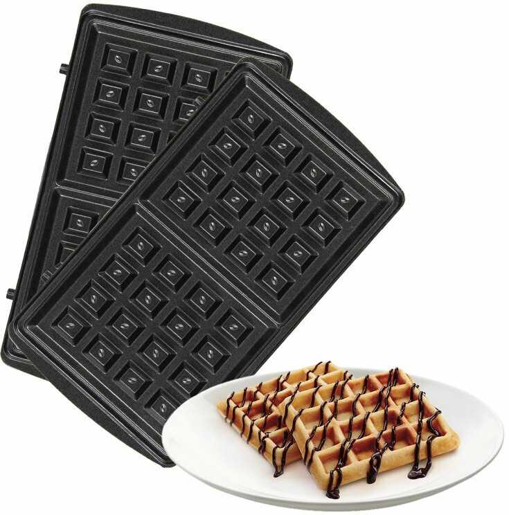 Стандартная комплектация чаще всего включает три панели: для венских вафель, гриля и треугольных сэндвичей (крендельков). Вместе с устройством поставляется книга рецептов, которую пользователи находят полезной и понятной. Существует возможность отдельно докупить другие панели, что значительно расширяет функционал прибора. Это позволяет готовить эклеры, тайяки, пончики, пиццу и многое другое. -