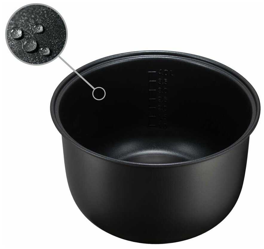 Подробная комплектация : | книга «50 рецептов», контейнер для приготовления на пару, мерный стакан, мультиварка, плоская ложка, руководство по эксплуатации, сервисная книжка, чаша с антипригарным покрытием DAIKIN®, черпак, шнур электропитания |