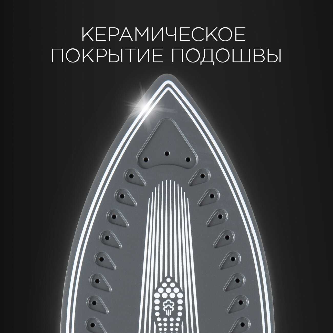 Пользователи высоко оценивают работу с деликатными материалами (шелк, шерсть, тонкий трикотаж). Керамическая подошва обеспечивает плавное скольжение без повреждения волокон, а возможность глажки на умеренной температуре с паром бережно разглаживает вещи без риска прожигания. -