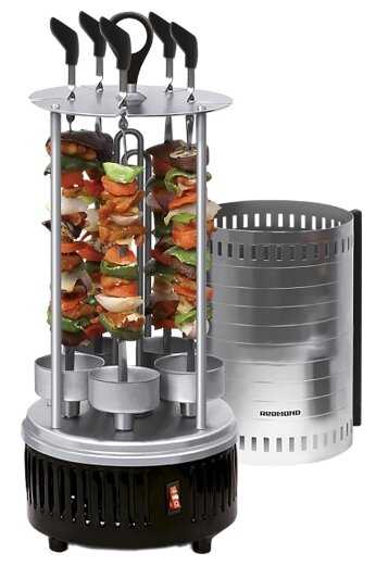 - - Очень маленький зазор между шампурами и теном, тоесть если вы привыкли к стандартному размеру куска, то прежде чем нанизывать его на шампур придётся разрезать ещё на 2-3 части, иначе кусок при вращении будет касаться тена, да и шампуриков всего 5 штук, за один заход получается приготовить очень мало мяса