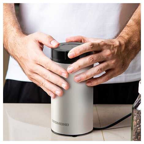 - Блокировка кнопки при открытой крышке предотвращает рассыпание зерен.