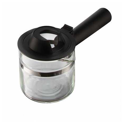 На первый взгляд показалась очень маленькой, но на семью хватило. Удобно заливать воду сверху. Постоянно пользуюсь насадкой капучинатор, пью только капучино, обычный не мое. Наливаю кофе сразу в кружку, но в комплекте есть колба из стекла.