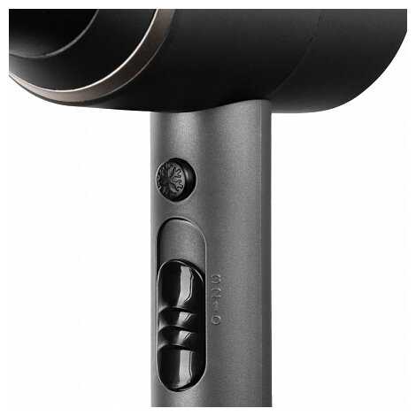 - Температурный диапазон от 55°C (щадящий режим) до 105°C (интенсивная сушка) подходит для тонких и густых волос.