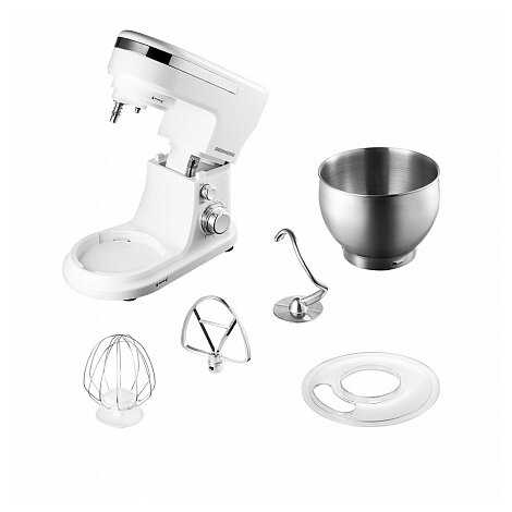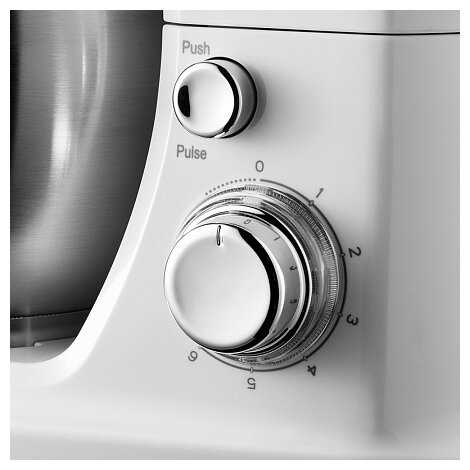 У него 3 сменные насадки, которые позволяют готовить разнообразные блюда. Двойная защита от перегрева и плавный пуск обеспечивают надёжность работы. Технология планетарного смешивания гарантирует равномерное перемешивание ингредиентов, а с импульсным режимом можно быстро избавиться от комочков. Чаша из металла вместимостью 5 литров удобна в использовании, а двойная защита от поломок гарантирует безопасность работы. Миксер прост в управлении.