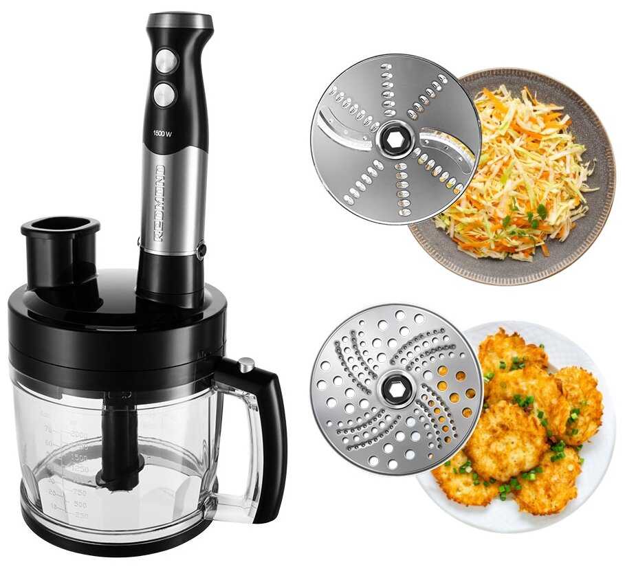 Великолепная комплектация, есть всё! Весь блендер очень удобный в сборке и работе, стаканы и чаши с присосками. Очень понравилось качество насадок, особенно насадка для приготовления картофельного пюре. У блендера плавная регулировка скорости, но нарезает и шинкует продукты быстро, ничего не зажевывает. Тазик оливье получаелся за три минуты.