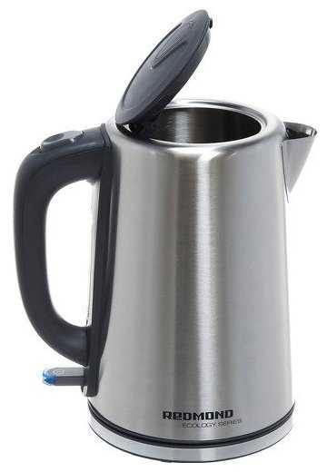 - + Стильный элегантный чайник с металлическим корпусом. Достаточно вместительный, при полной загрузке закипает быстро в течение 2 минут. Практически бесшумный (вопреки некоторым отзывам).Постороннего запаха пластмассы нет. После второго кипячения воды (первый слили) был неприятный привкус, но промыла теплой водой с содой, и теперь все замечательно. Крышка открывается широко на 90 градусов. Индикатор уровня жидкости пластиковый снаружи, внутри металлическая трубка, т.е. пластика внутри нет совсем.