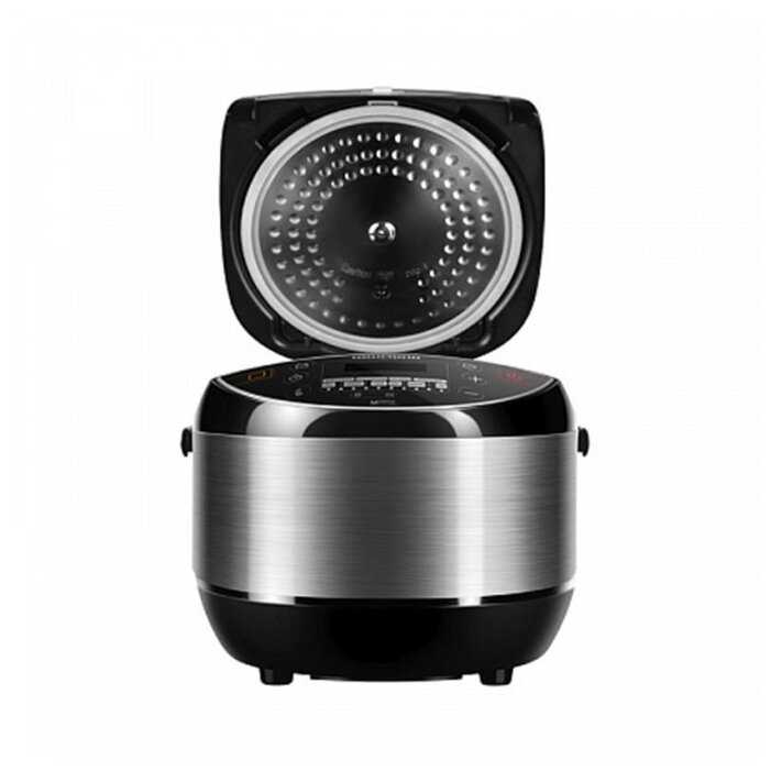 - + Индукция, мультиповар, мультилайт, съёмная крышка, а также клапан, панель управления на корпусе, кастрюлька тяжёлая с антипригарным покрытием с двух сторон.