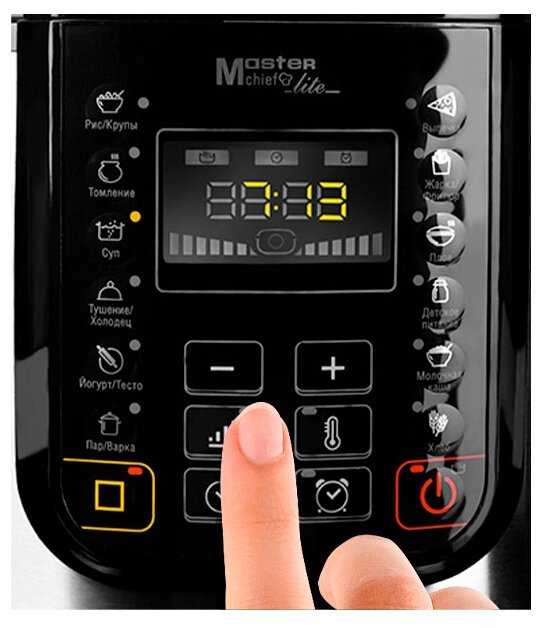 - Позволяет запрограммировать начало готовки, например, к утру или возвращению с работы.