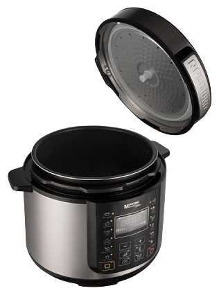 - + Удобно мыть съёмную крышку. Приготовление пищи под давлением.