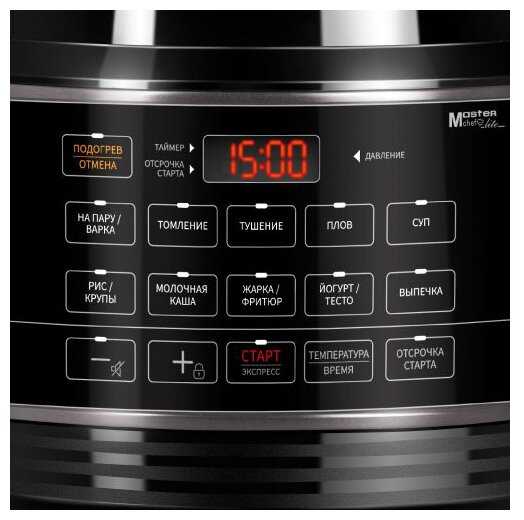 - Отложенный старт и таймер обратного отсчета (до 24 часов) для планирования готовки.