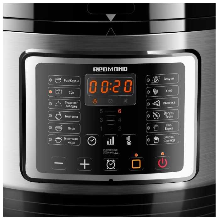 - + Функциональность, множество встроенных программ, возможность изменения режима после запуска программы, наличие клапана принудительного сброса давления.