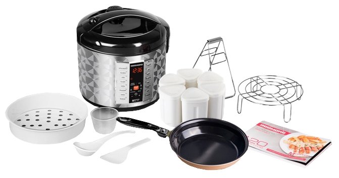 - + Можно настраивать свои программы и изменять атоматические, большая чаша с антипригарным покрытием, в комплекте сковорода контейнер для приготовления на пару и йогуртница.