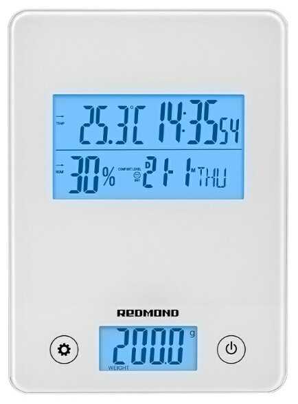 - + Отличные кухонные весы с часами. Также показывают температуру и влажность.