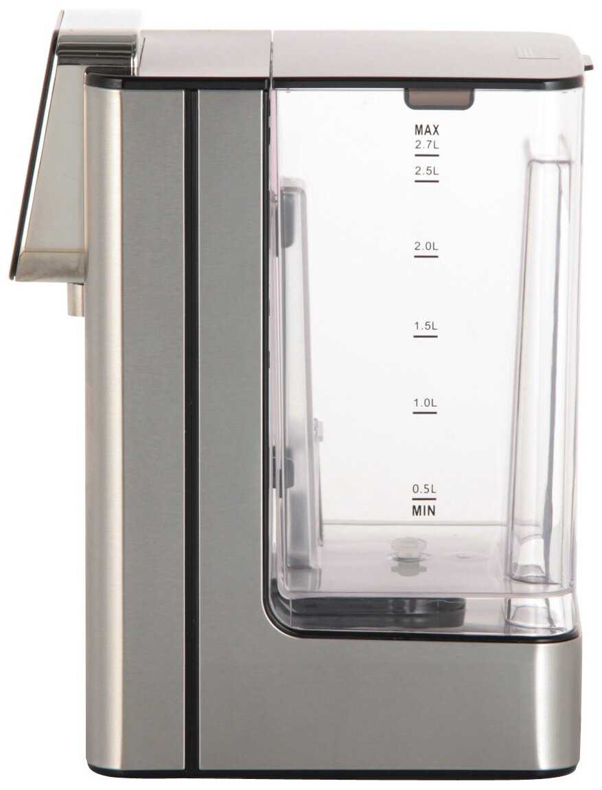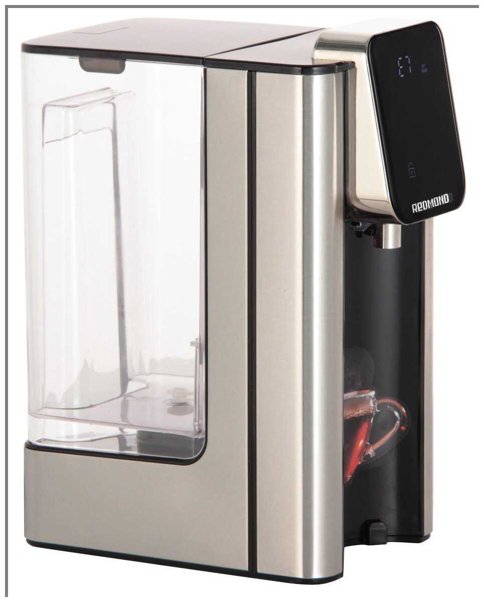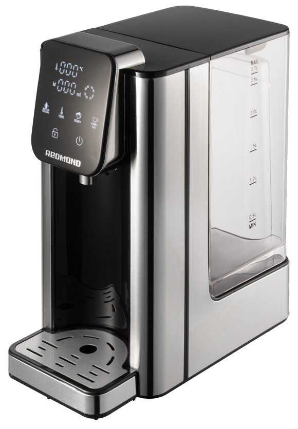 - + 6 температурных режимов от 45 градусов, есть блокировка подачи воды от детей, автоотключение при недостаточном количесвте воды, объем резервуара 2.7 литра, удобное сенсорное управление, выбор объема порции (200, 300 или 400 мл)