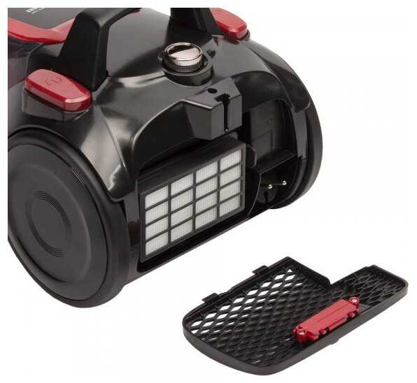- + Хорошая мощность и радиус действия. НЕРА фильтр. Малошумный, манёвренный. Очищается контейнер легко и быстро, плюс вместительный. Три насадки. Регулировка мощности на корпусе и на ручке. Прорезиненные колеса