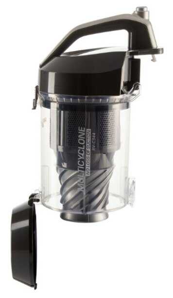 - Контейнер может частично отсоединяться при поднятии пылесоса за ручку, временно снижая мощность.
