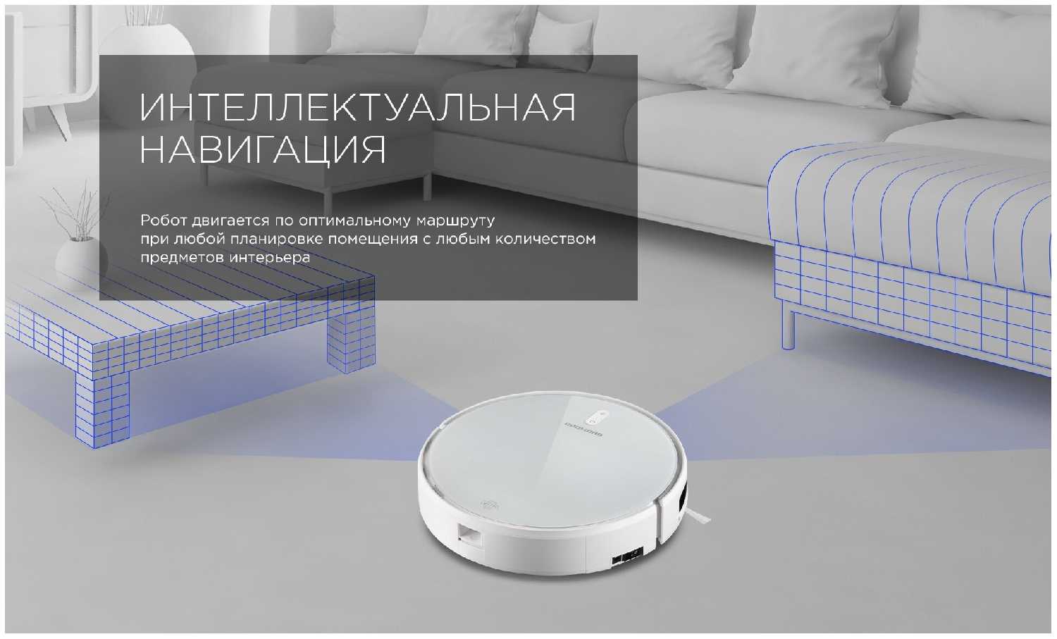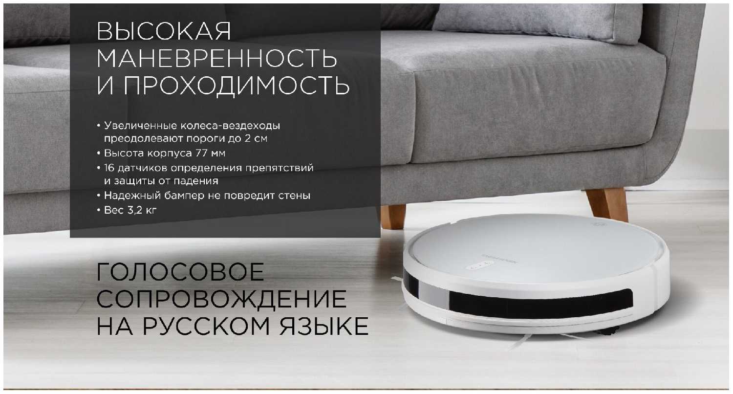 - Робот проезжает под низкими диванами, кроватями и кухонными гарнитурами, куда не дотянуться вручную.