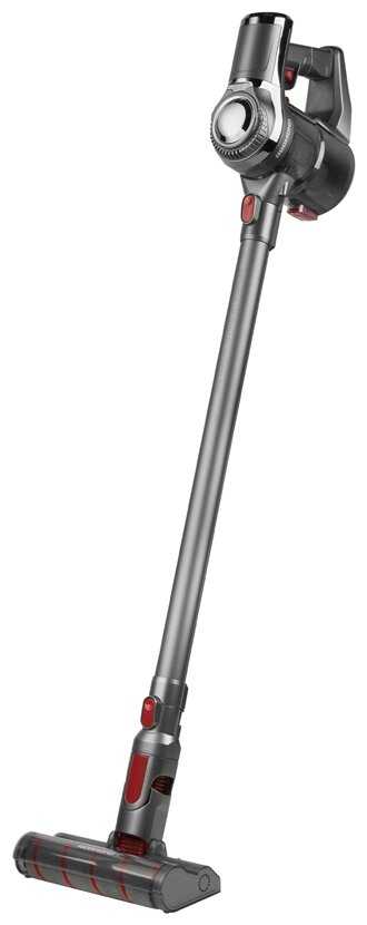 - Вертикальная конструкция и возможность быстрой трансформации в ручной пылесос упрощают чистку лестниц, автомобиля и текстиля.