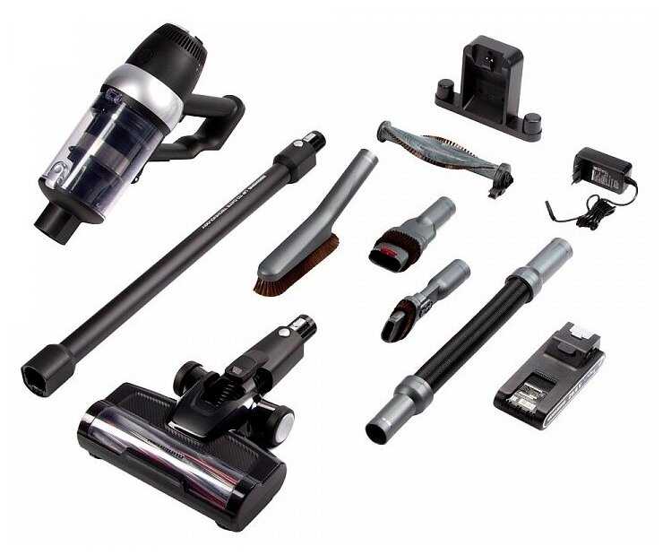 - + 2 способа сборки для дома и авто, беспроводной (свобода пережвижений), объем пылесборника 0,6 литра, просто очищается одним нажатием кнопки, имеется настенное крепление для хранения, в комплекте: турбощетка со сменными роликами, насадка с щеткой 2в1, насадка для мебели, щелевая насадка