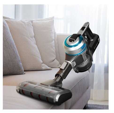 Очень рада что приобрела это чудо . Мощность всасывания нереальное(как хороший пылесос ) +2 турбощетки ( сравнивали с самсунгом .в разы лучше щетки плюс ещё прорезиненые вставки мягкий и жесткий ворс ) легка в очистке контейнера . Аккумулятора хватает на 40 минут при турбо использовании . + этот аккумулятор можно будет купить и поменять самому . Хороший аналог дайсону и не так дорого !!!