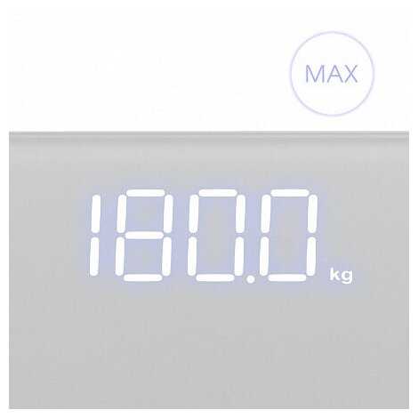 - Четыре сверхчувствительных датчика показывают вес с шагом 50 грамм, измеряют даже вес кошки (4 кг) и до 180 кг для человека.