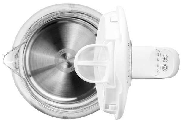 - + настраиваемая подсветка, управляется через приложение в телефоне, можно выбрать температуру нагрева из 5 режимов, выполнен из термостойкого стекла, имеет надежный конроллер, который отключает чайник при кипении, достижении нужной температуры, отсутствии воды или при снятии с подставки