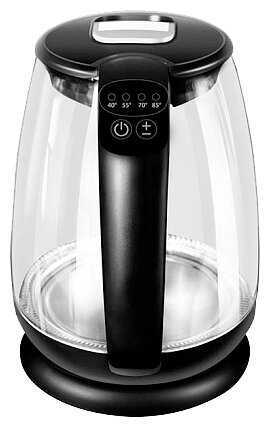 - + 1.7 литра, 5 температурных режимов, удобное управление через кнопки на ручке, стеклчнный корпус, яркая подсветка, контактная группа контролирует автовыключение и позволяет крутить корпус на 360 градусов