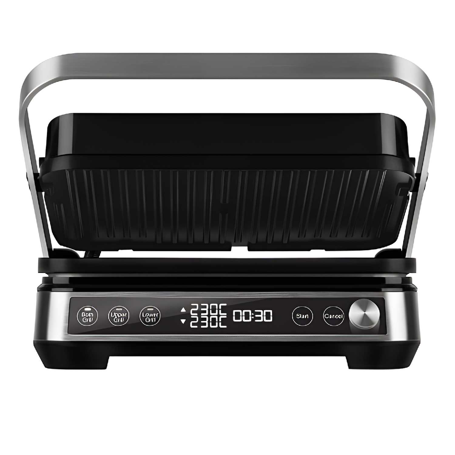| Особенности : | антипригарное покрытие, контактный гриль, поддон для сбора жира, регулировка высоты верхней панели, съемные пластины |