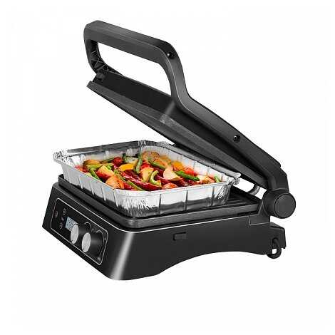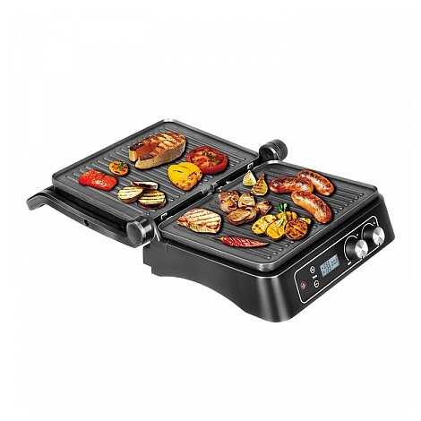 - Возможность разложить гриль на 180° для одновременного использования двух зон.