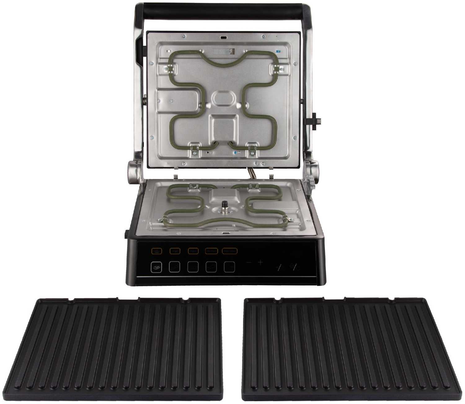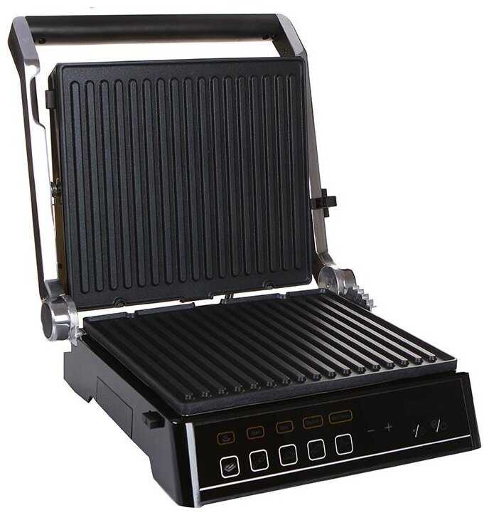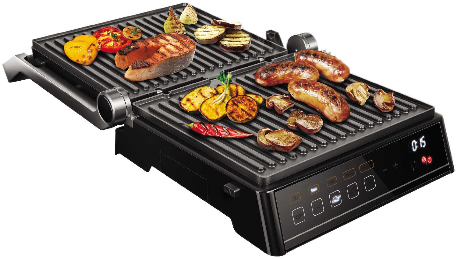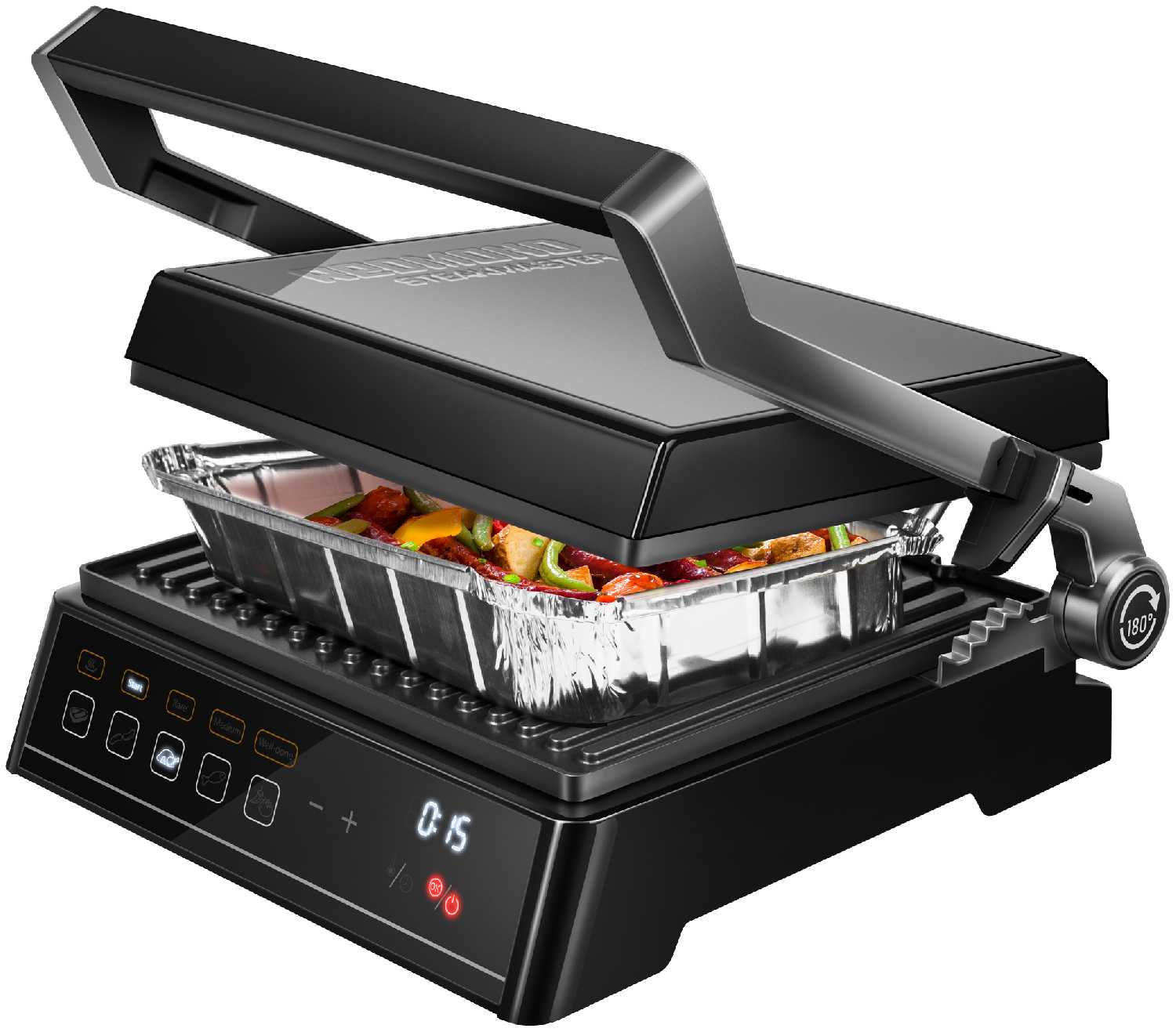 - Режим барбекю при раскрытии панелей на 180° и использовании съемного противня.
