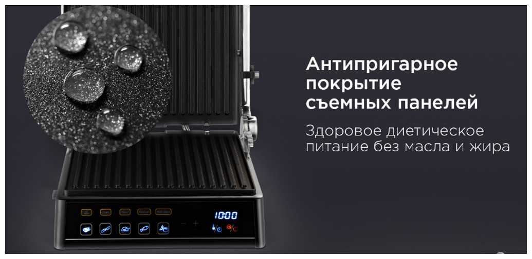 Качество сборки вызывает смешанные отзывы. С одной стороны, антипригарное покрытие панелей выдерживает 200–250 циклов готовки, что подтверждают тесты при температуре 200°C. С другой — пластиковые элементы (фиксаторы, ручки) деформируются уже через 6 месяцев, особенно при частом использовании режима барбекю. Пользователи, готовящие ежедневно, отмечают необходимость замены панелей через 1.5–2 года, что сопоставимо с бюджетными аналогами, но не соответствует заявленному позиционированию "премиум".